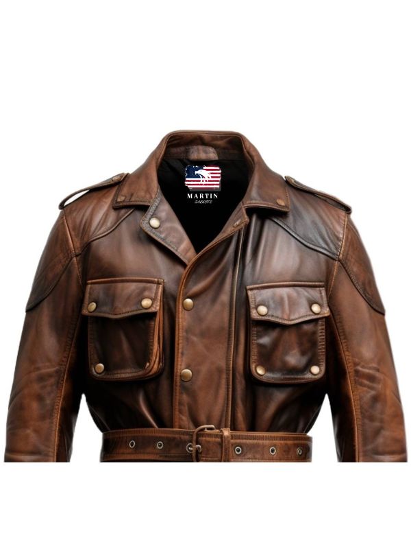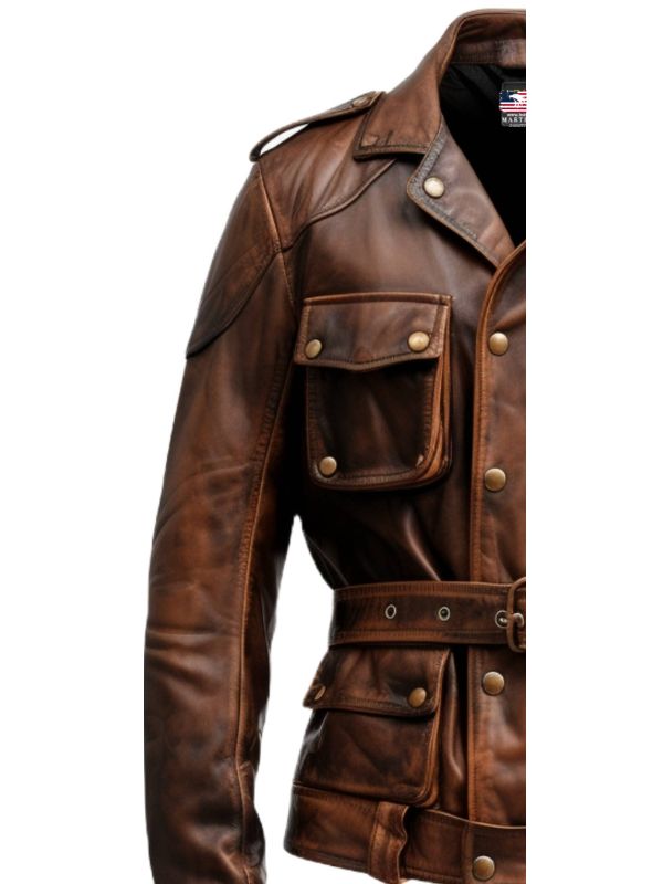 Men Military Style Vintage Leather Jacket