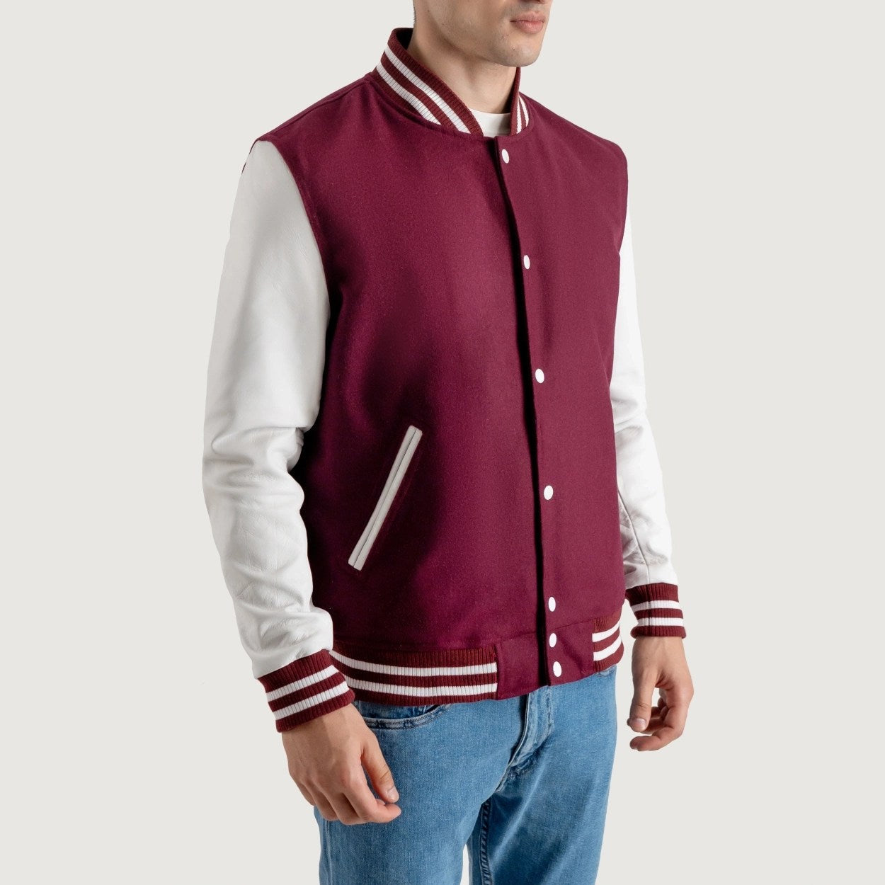 Burgundy Maroon and White Varsity Letterman Jacket